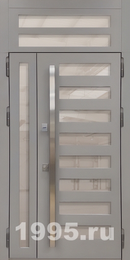 Полуторная дверь с фрамугой, остеклением, хромированной длинной ручкой (терморазрыв)