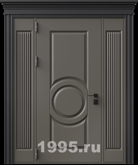 Стальная дверь с металлофиленкой, вставками по бокам, карнизом и порошковым покрытием RAL 7022 (тип №1)