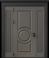 Стальная дверь с металлофиленкой, вставками по бокам, карнизом и порошковым покрытием RAL 7022 (тип №1)